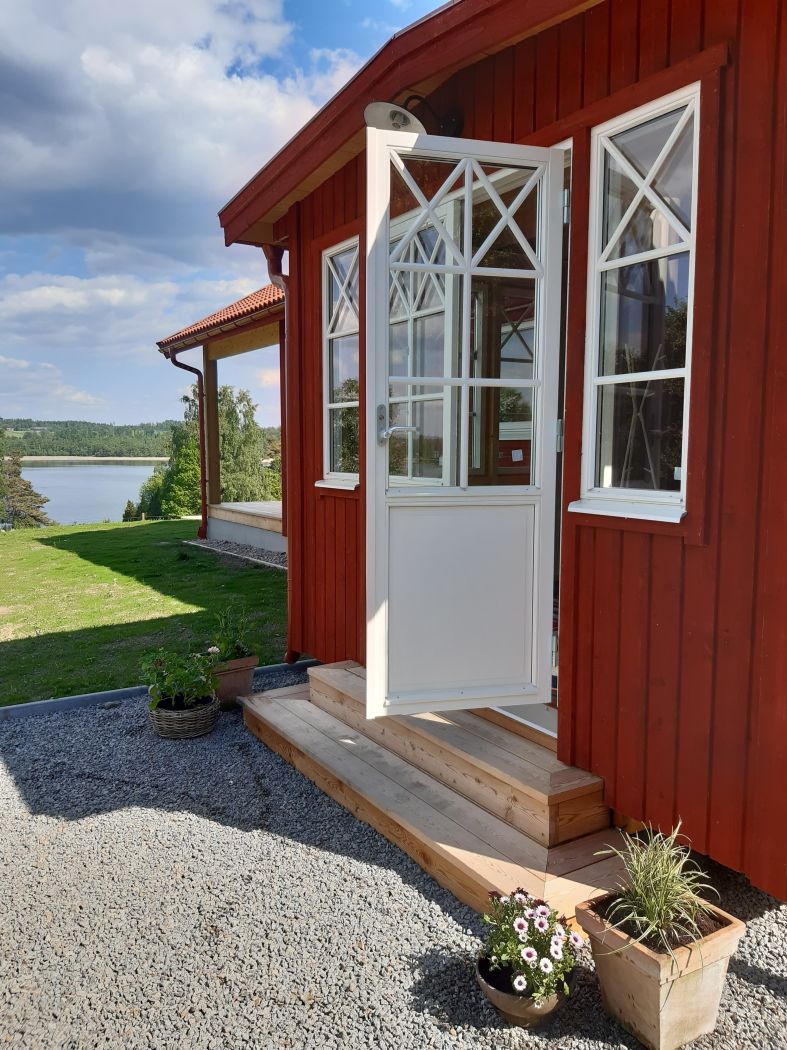 Das typisch rot-weiße Schwedenhaus Sjötorp ist im traditionellen Stil gebaut. Es hat 3 Schlafzimmer, ein großzügiges Wohnzimmer mit angegliederter Küche, ein helles Bad mit Dusche und eine große Holzterrasse. Zum Haus gehört ein schöner Garten mit Grill. Die Einrichtung ist modern, skandinavisch schick und sehr gemütlich. Durch große Fenster ist es hell und luftig. Wenn es kühler ist, sorgt der Ofen für Behaglichkeit. Vom Wohnzimmer und von der Veranda aus hat man einen schönen Blick auf den See.